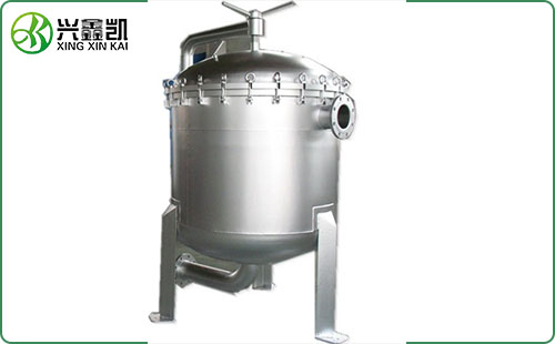 袋式過濾器是一種壓力式過濾裝置,主要有過濾筒體、過濾筒蓋和快開機構、不銹鋼濾袋加強網等主要部件組成,濾液由過濾機外殼的旁側入口管流入濾袋,濾袋本身是裝置在加強網籃內,液體滲透過所需要細度等級的濾袋即能獲得合格的濾液,雜質顆粒被濾袋攔截。該機更換濾袋十分方便,過濾基本無物料消耗。